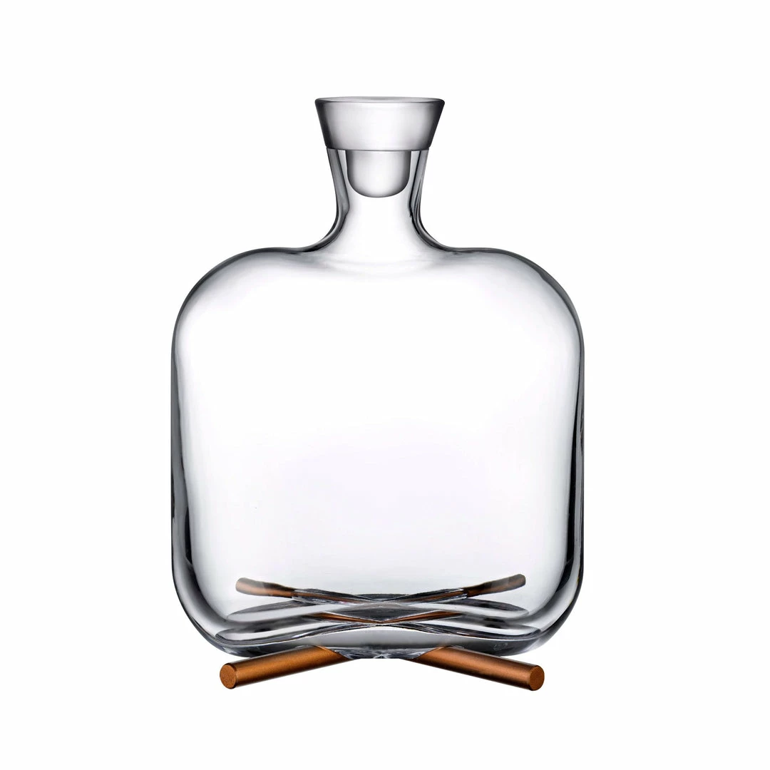 Designed for optimal taste and flavour enhancement, the NUDE Camp whisky bottle combines a lead-free crystal carafe with a distinctive brass base — its x shape recalls the warmth emanating from burning logs, a feeling similar to the one you get from tasting a great whisky. The silhouette is clean-cut and compact, with a heavy-base design heightening the sculptural quality.