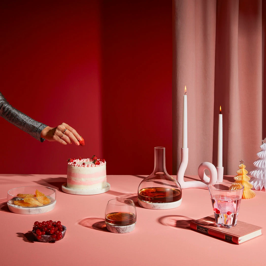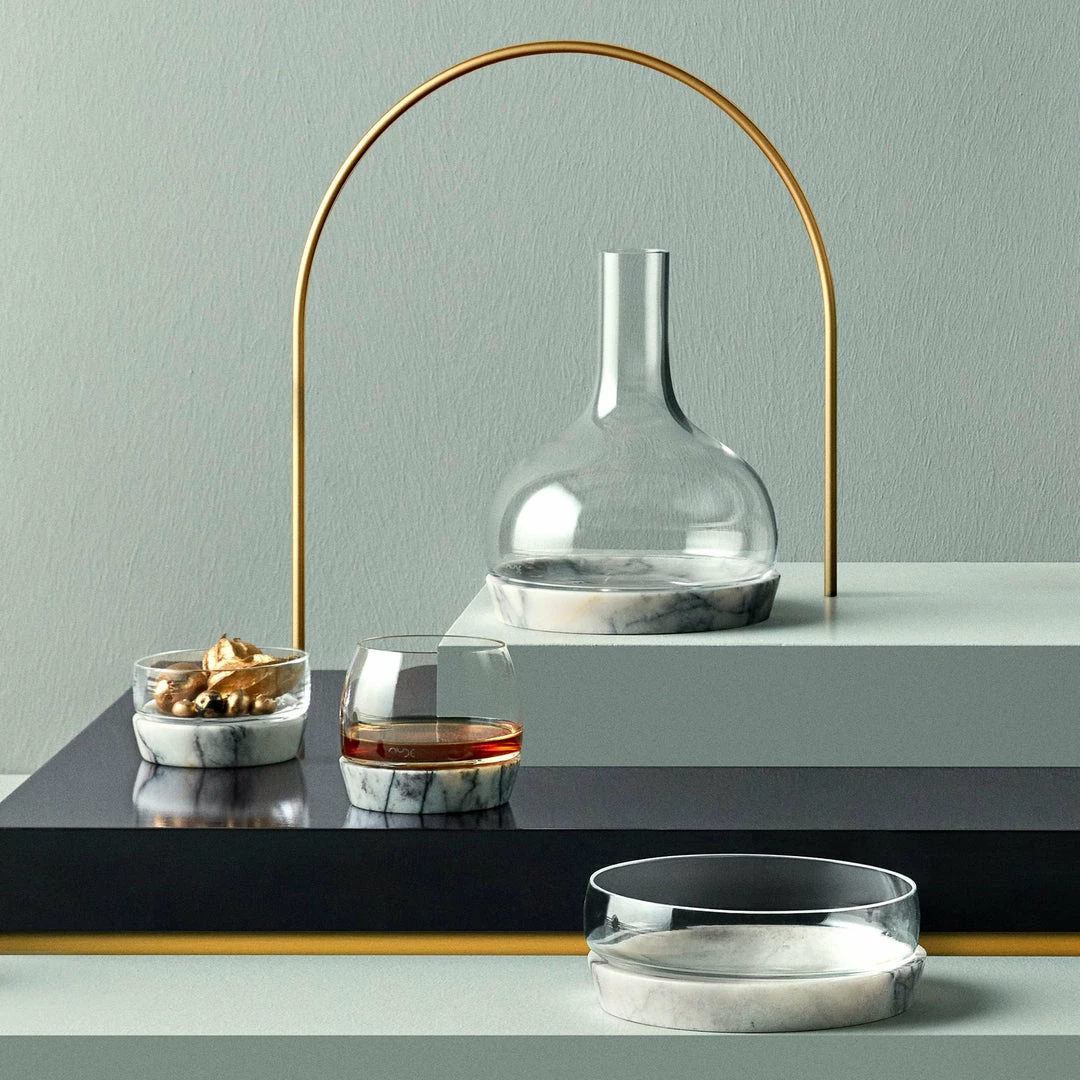 This NUDE Chill bowl consists of two pieces: a crystalline glass vessel and a marble base designed to sit underneath. The clever construction helps to maintain the temperature of your chosen dish while adding a refined textural contrast to the mix. Available in two sizes — this one is M.
