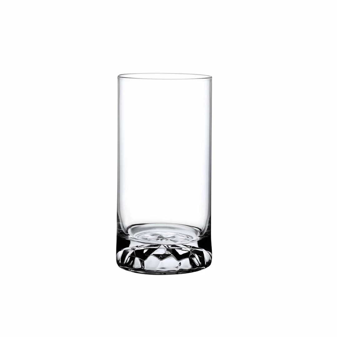 From the NUDE Club series, this set of four medium-sized high ball glasses has a clean, quiet shape cut from clear lead-free crystal. The focal point of each design β the dramatically carved base with a ripple effect β adds a subtle optical effect.