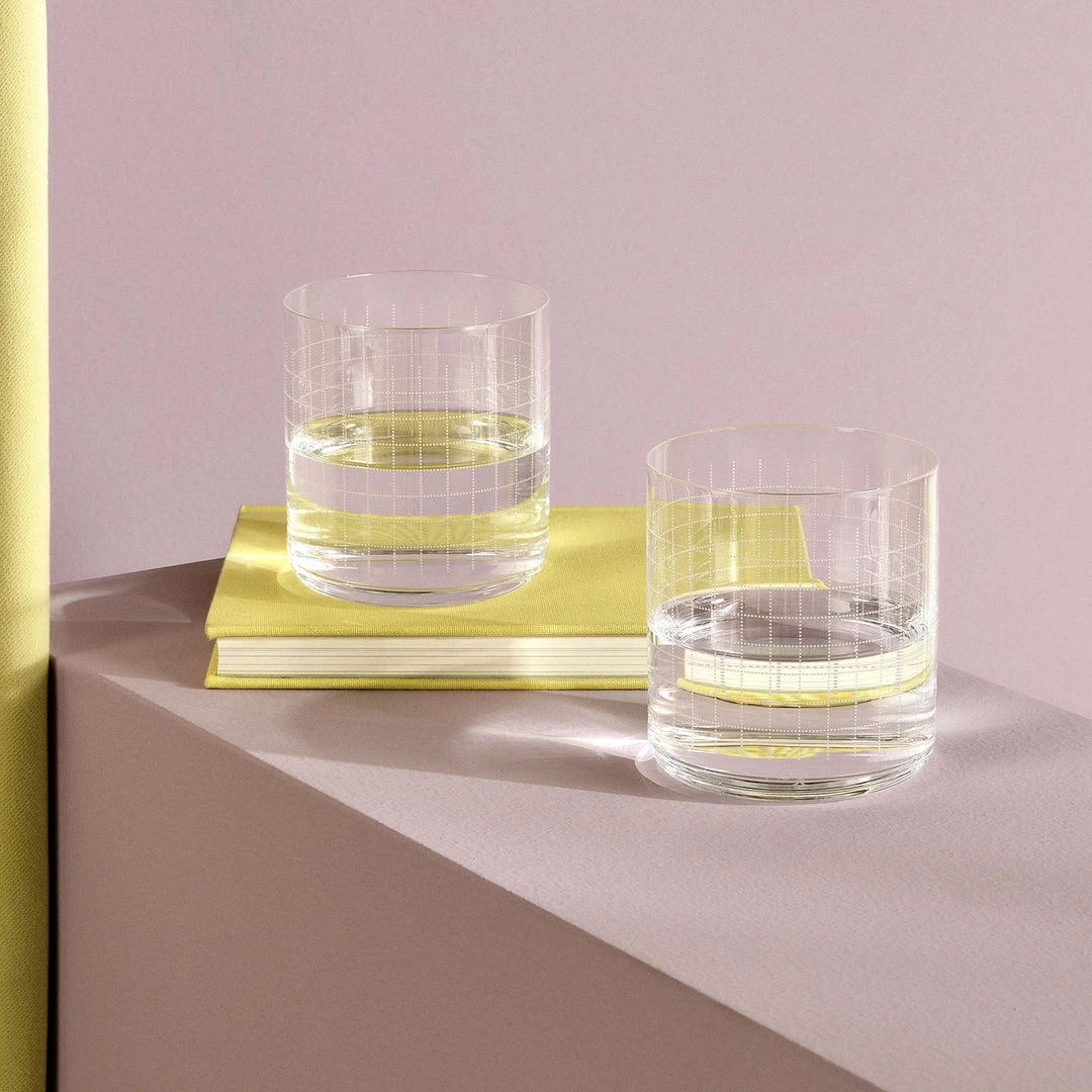 From the NUDE Finesse Grid range, this set of whisky glasses combines a minimal silhouette with an intricate graphic pattern etched into the crystalline surface, giving the design a surprising depth and texture. The minimal silhouette maintains a thoroughly timeless and luxe appeal.