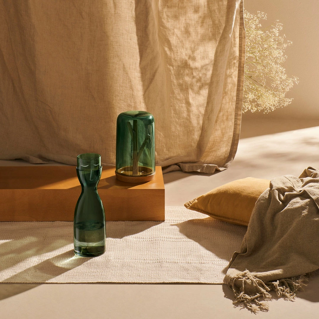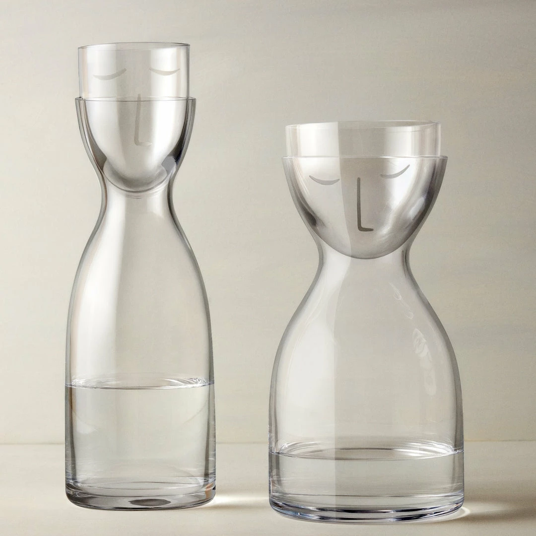 Minimally-shaped, the NUDE Mr.&Mrs. bedside water set takes on its own unique personality, thanks to the sleeping face motif adorning the complementary cup, which also doubles up as a bottle stopper. Crafted from fine crystalline glass, the tall silhouette will add a touch of elegance to any table.