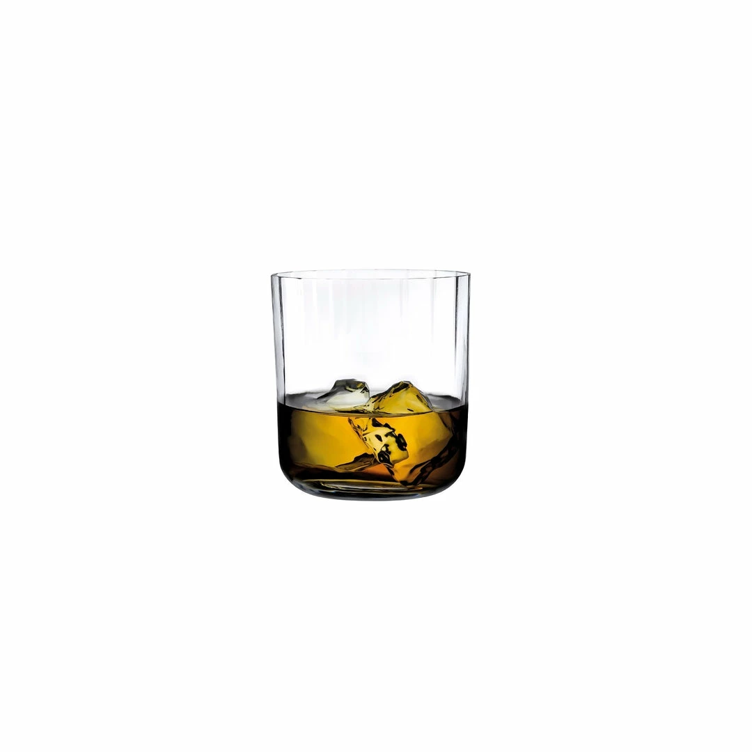 With its beautifully bevelled edge and a gently flared rim, this set of whisky glasses is easily distinguishable as belonging to the NUDE Neo range. At the collectionβs core is clear lead-free crystal, which β due to the remarkable craftsmanship, depth and detailing β appears more sculptural than decorative.