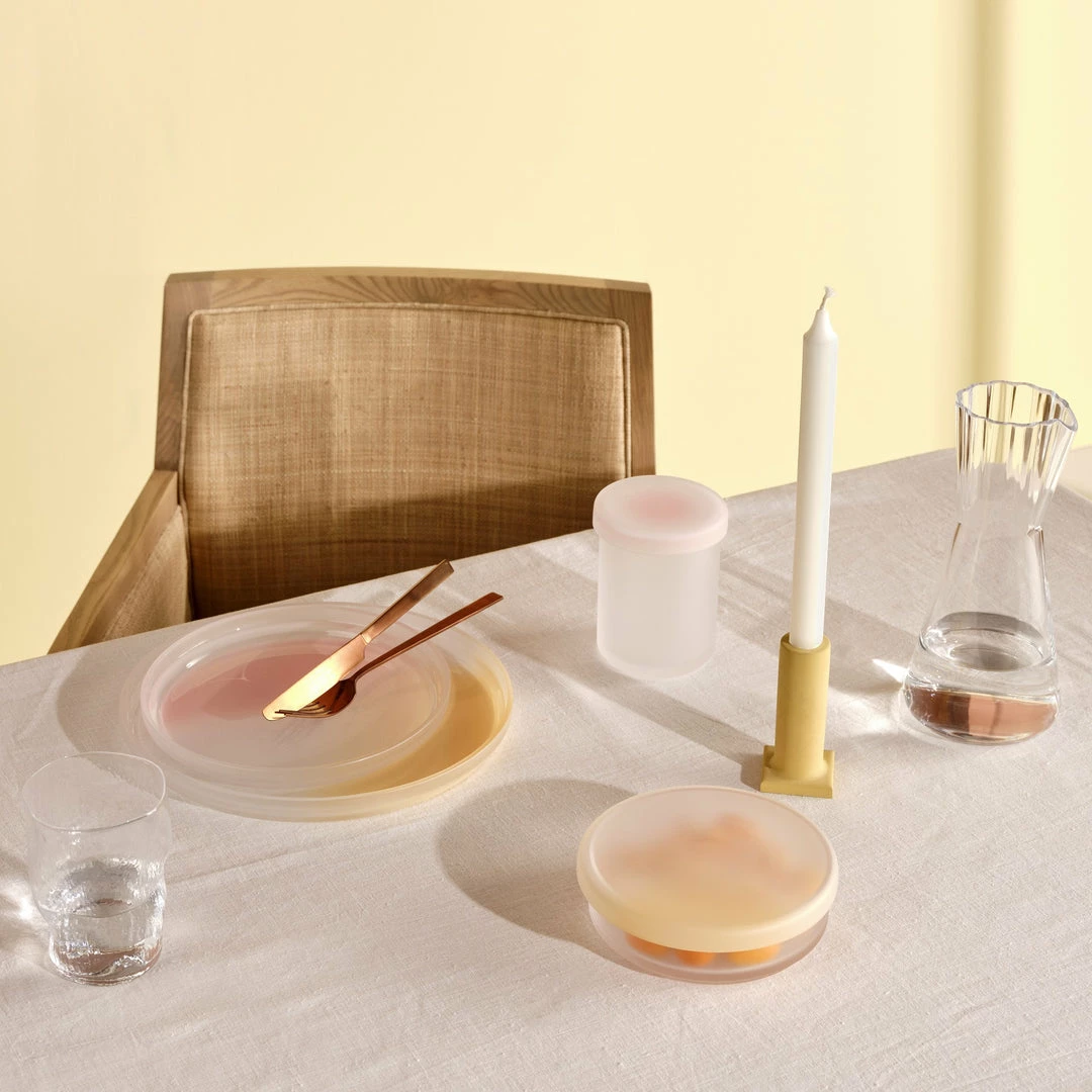 The NUDE Pigmento collection owes its name to the unique colouration technique, where the pigment is spray-painted by hand onto the finished product. This singular process results in subtle variations and different characteristics, making each piece unique. With its sandblasted matte texture and a signature ombré finish, this tall crystalline storage box bears all the hallmarks of the range.