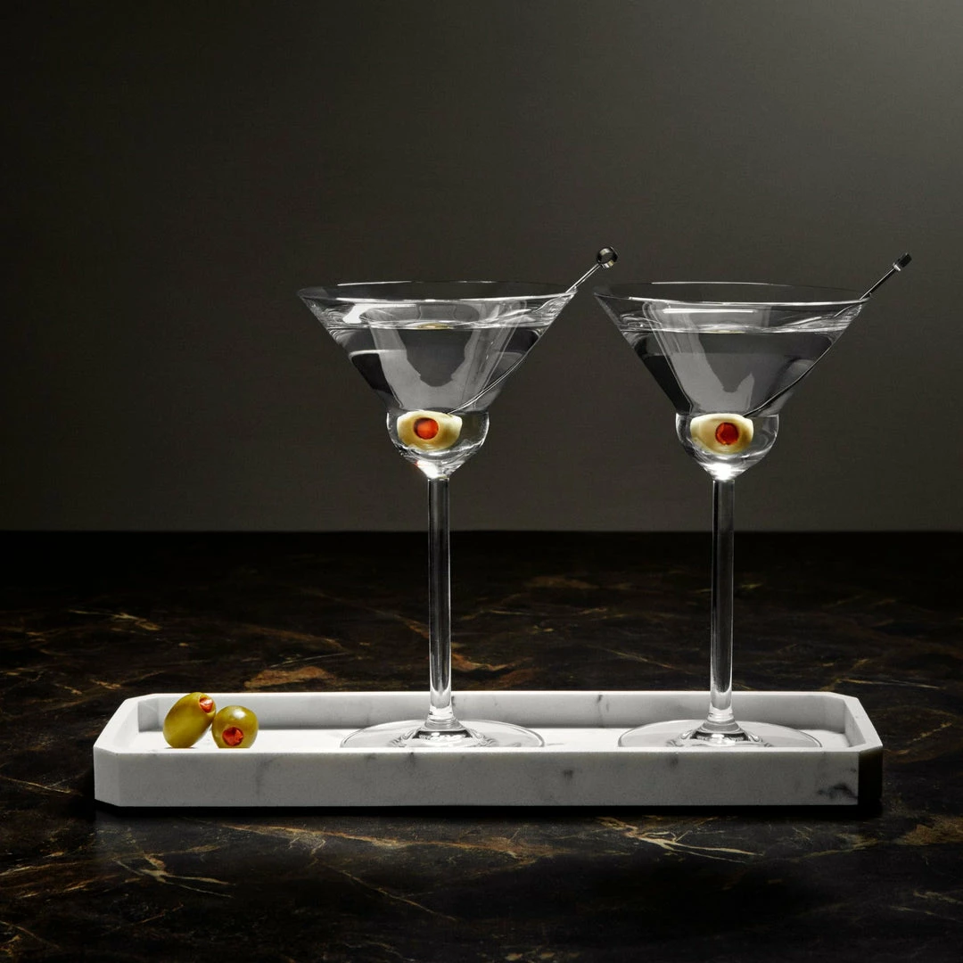 For martinis and more β this NUDE Vintage set of glasses presents an extremely clean silhouette with a rounded base and a traditional, long stem. Crafted from pure lead-free crystal, the result offers an aesthetically pleasing design that also has a practical purpose of keeping the cocktails cool.