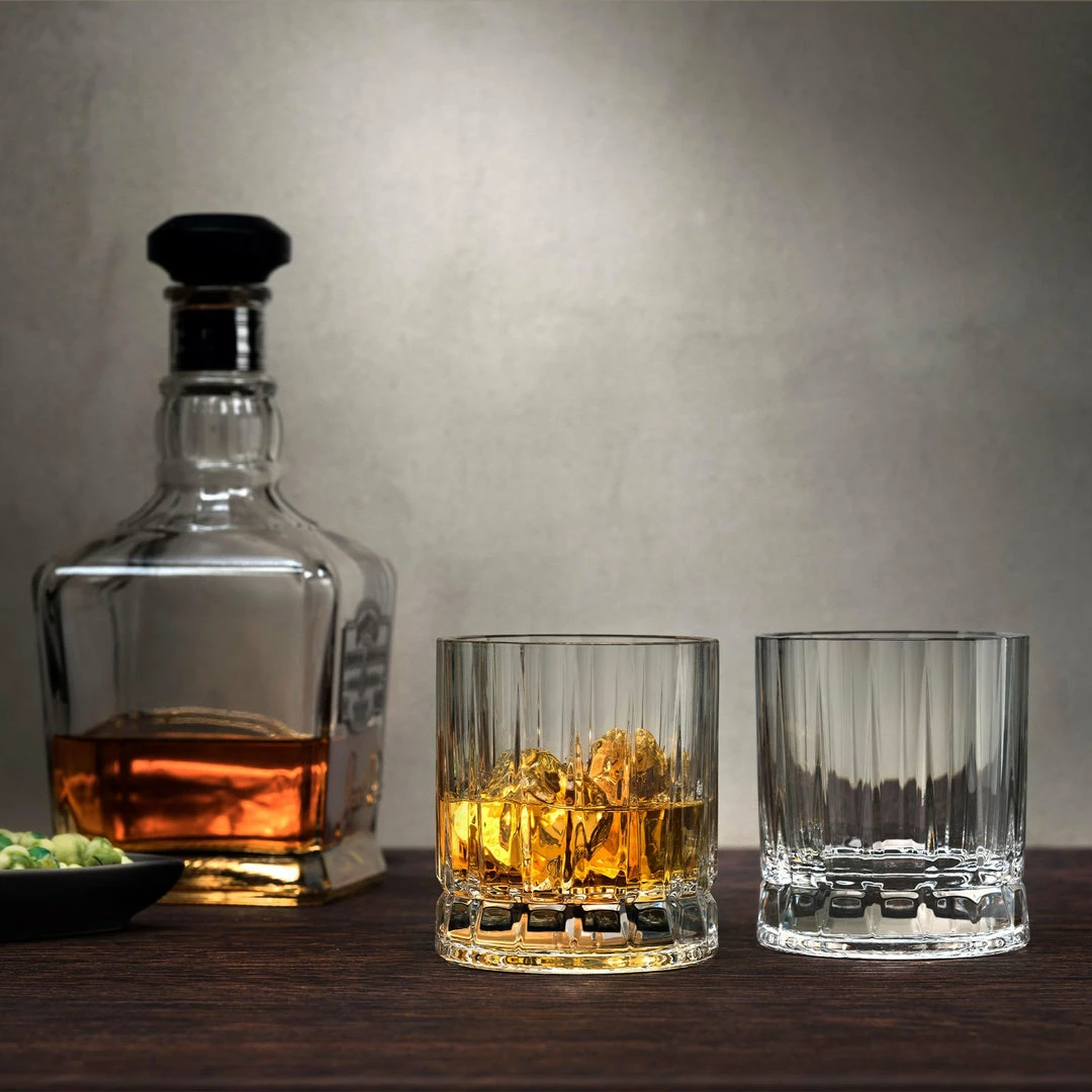 The distinct cuts and intricate overlays of textures showcased in these NUDE Wayne SOF whisky glasses underscore the aesthetic purity and radiance of crystalline glass. Presented in a set of four, the exclusive design is demonstrative of the complex glass forming techniques for which NUDE is known.